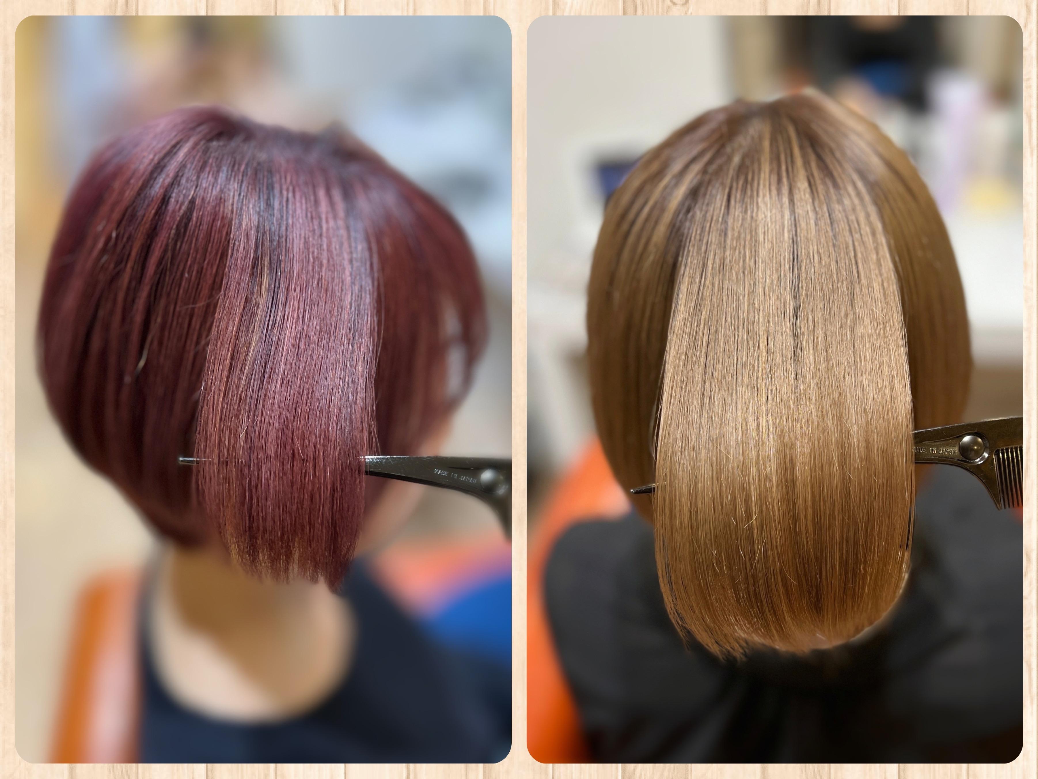 ◆縮毛矯正の施術の際には 美髪カラーの施術を 別日で推奨しております ※施術後に持ちが悪くなるためです ◆カットしない時は ¥3300を 縮毛矯正メニューより割引させていただきます