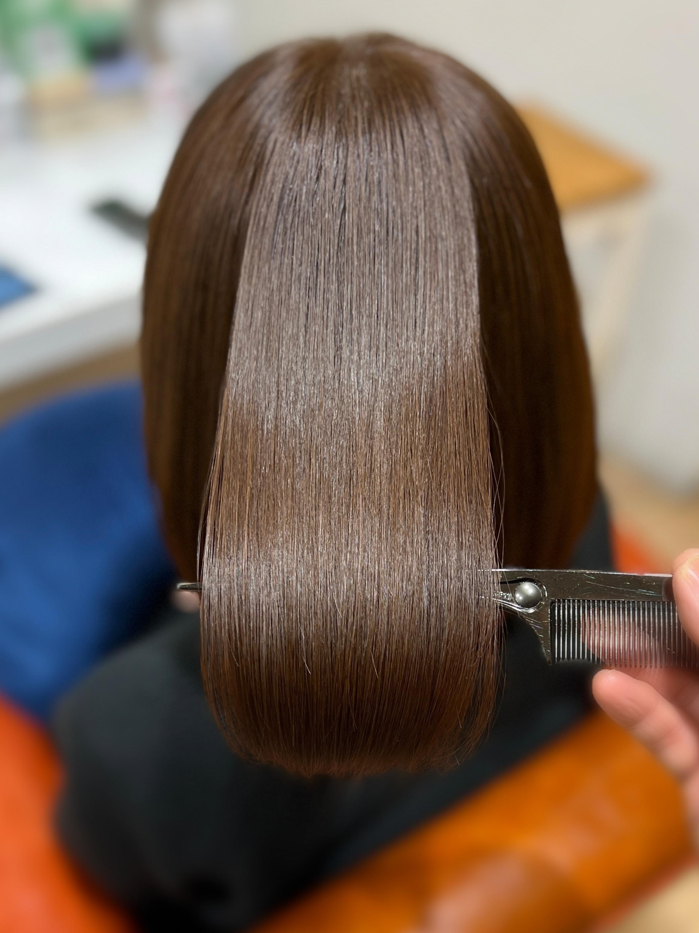 ◆美髪縮毛矯正した髪の状態に合わせて ご希望の長さ バランスにカット ◆毛量調整 質感調整は のちのち荒れない特殊な技法で ◆クセ戻りしにくいバランスにカット