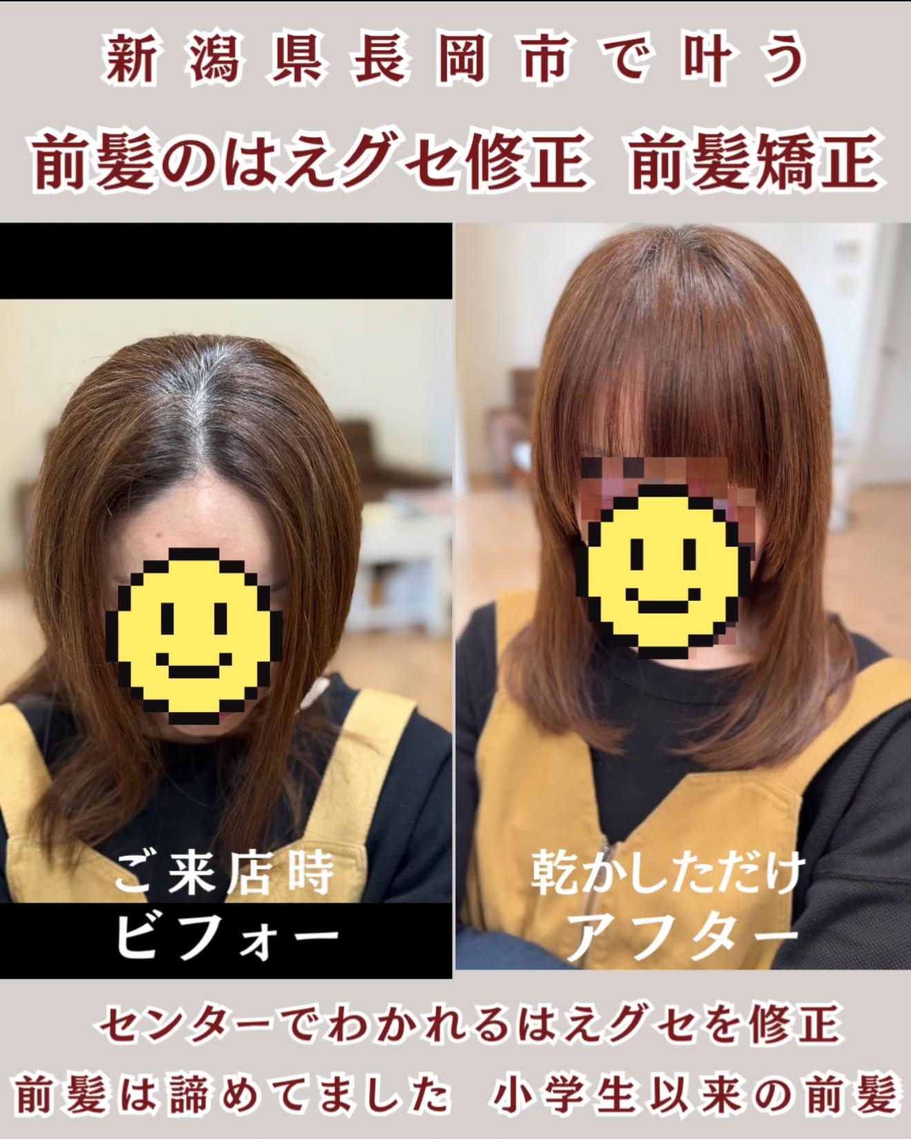 ◆前髪のうねる はねる等のクセを整えます ◆割れる生えグセ不可(寺迫正悟メニューあり) ◆施術当日は 洗ってしっかり乾かしてご来店ください ◆美髪カラー(ハイトーン不可)と同日施術可能ですが 別日推奨です ◆カット等 必ず同日予約