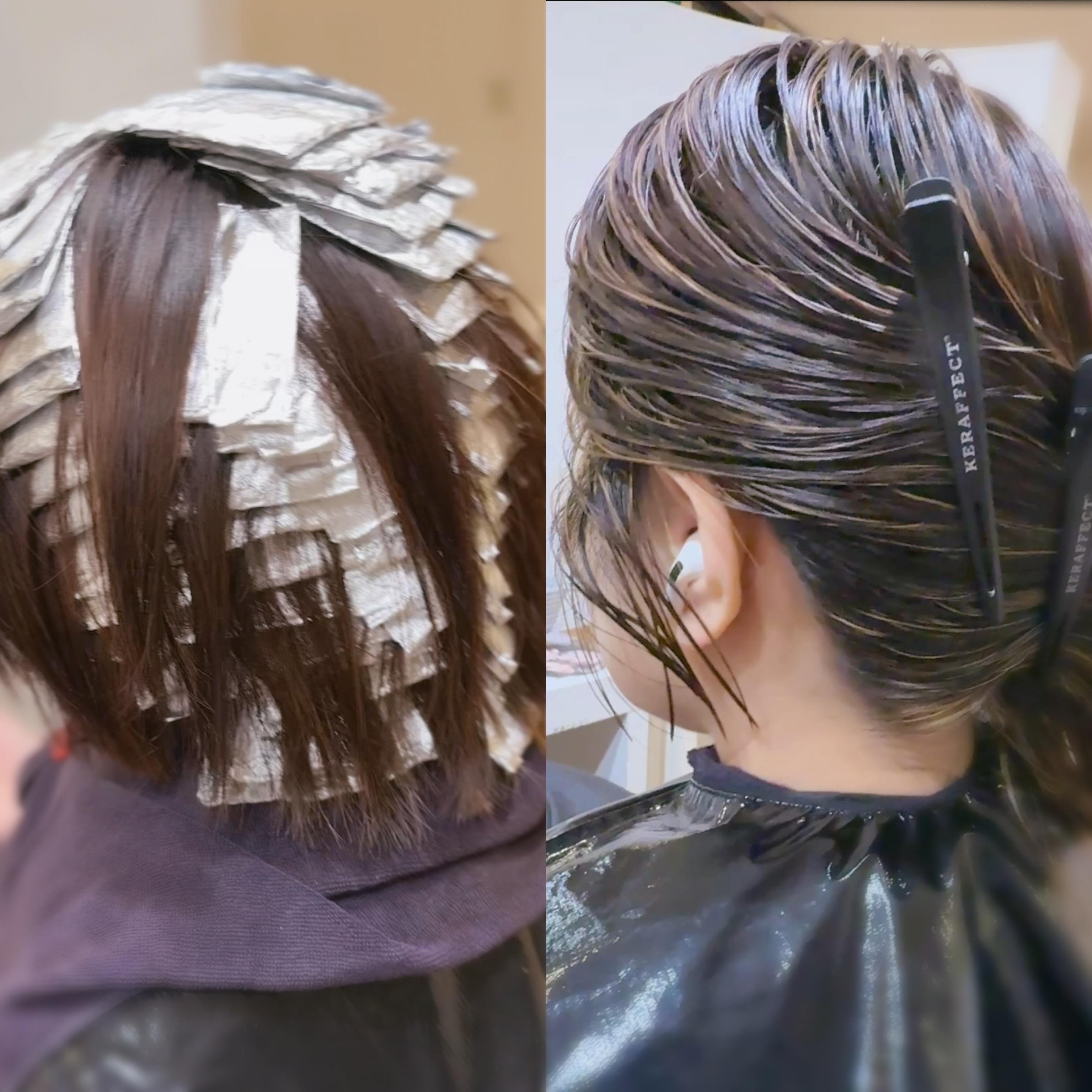 くっきりブリーチのハイライト/ 美髪カラーを同日に一緒に選択 ご予約ください