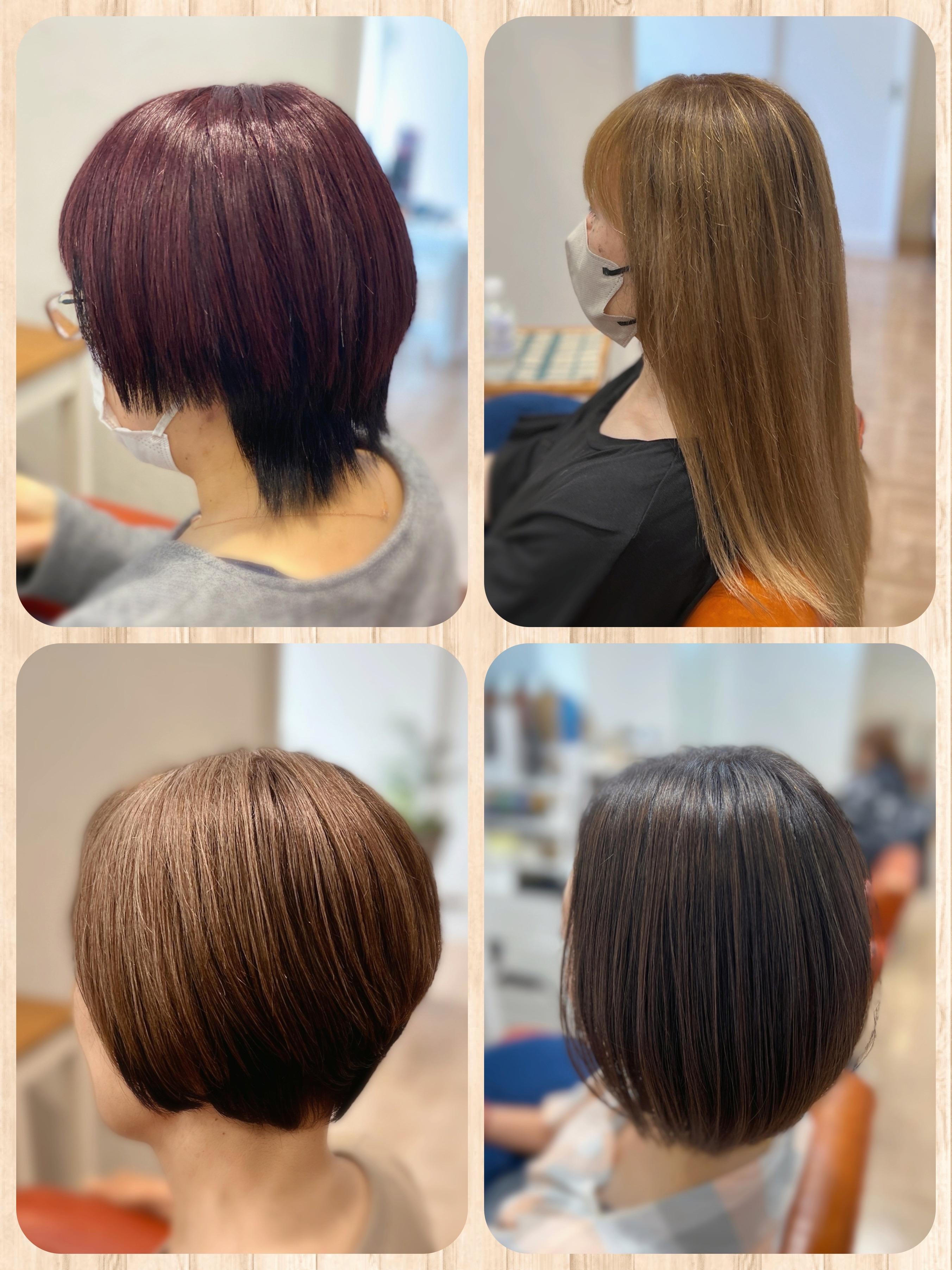 ◆カラー→キレイに染める アルカリ残さない ◆カット→長さ&毛量が整う(個別の補正はしません) ◆ダメージやエイジングの同時ケアご希望の場合 カットでのお悩み改善(補正カット)までご希望の場合には 担当者ごとのメニューよりお選びください