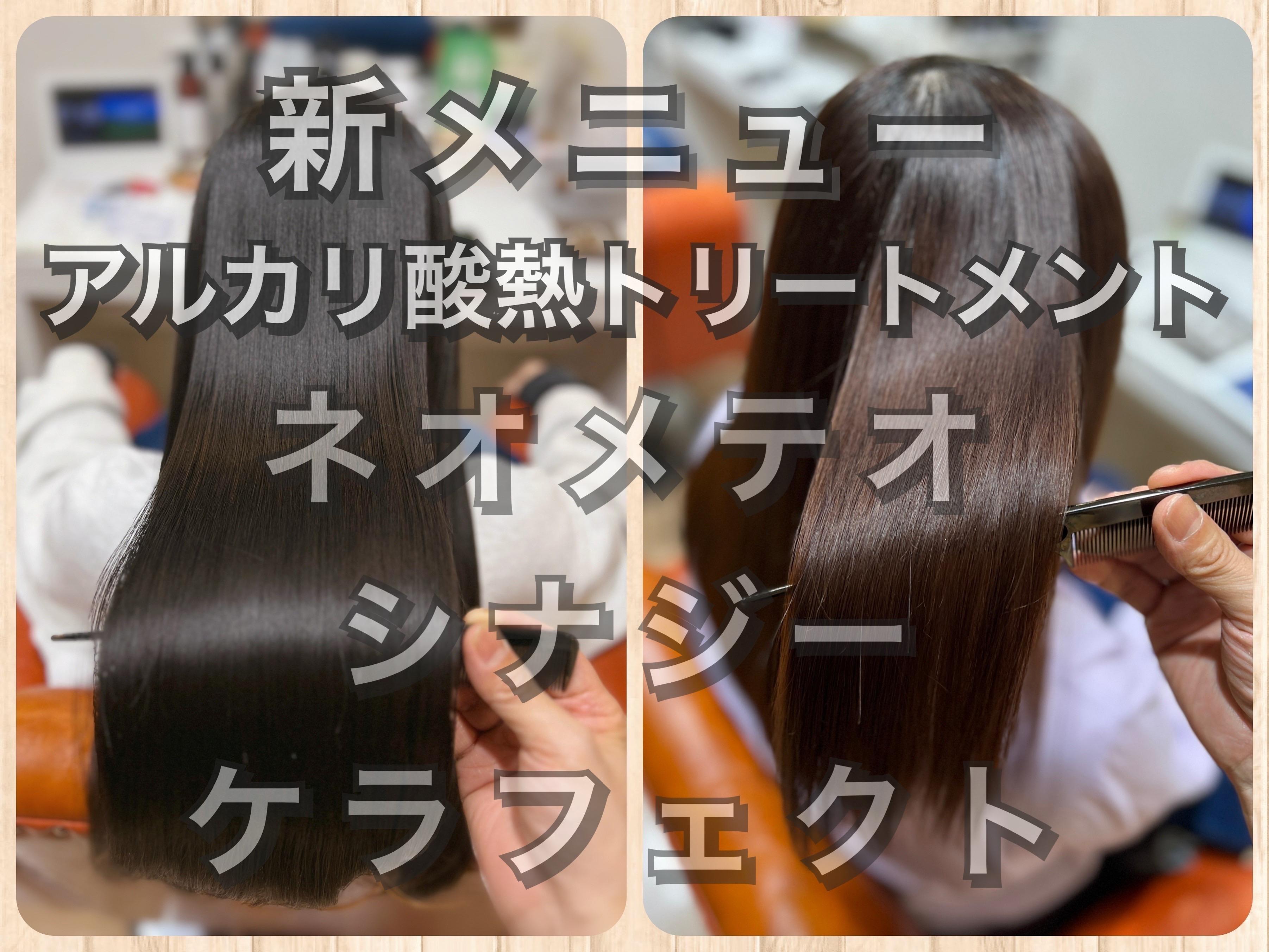 ◆アルカリ酸熱系トリメン『NEOメテオ』→髪の内外部を保湿&架橋&しなやかUP成分で艶髪に整える超美髪メニュー☆ ◆美髪縮毛矯正のメンテナンスとしておススメ! ◆艶感 艶感長持ち♪ ◆多毛さん セミロング以上+¥1100~